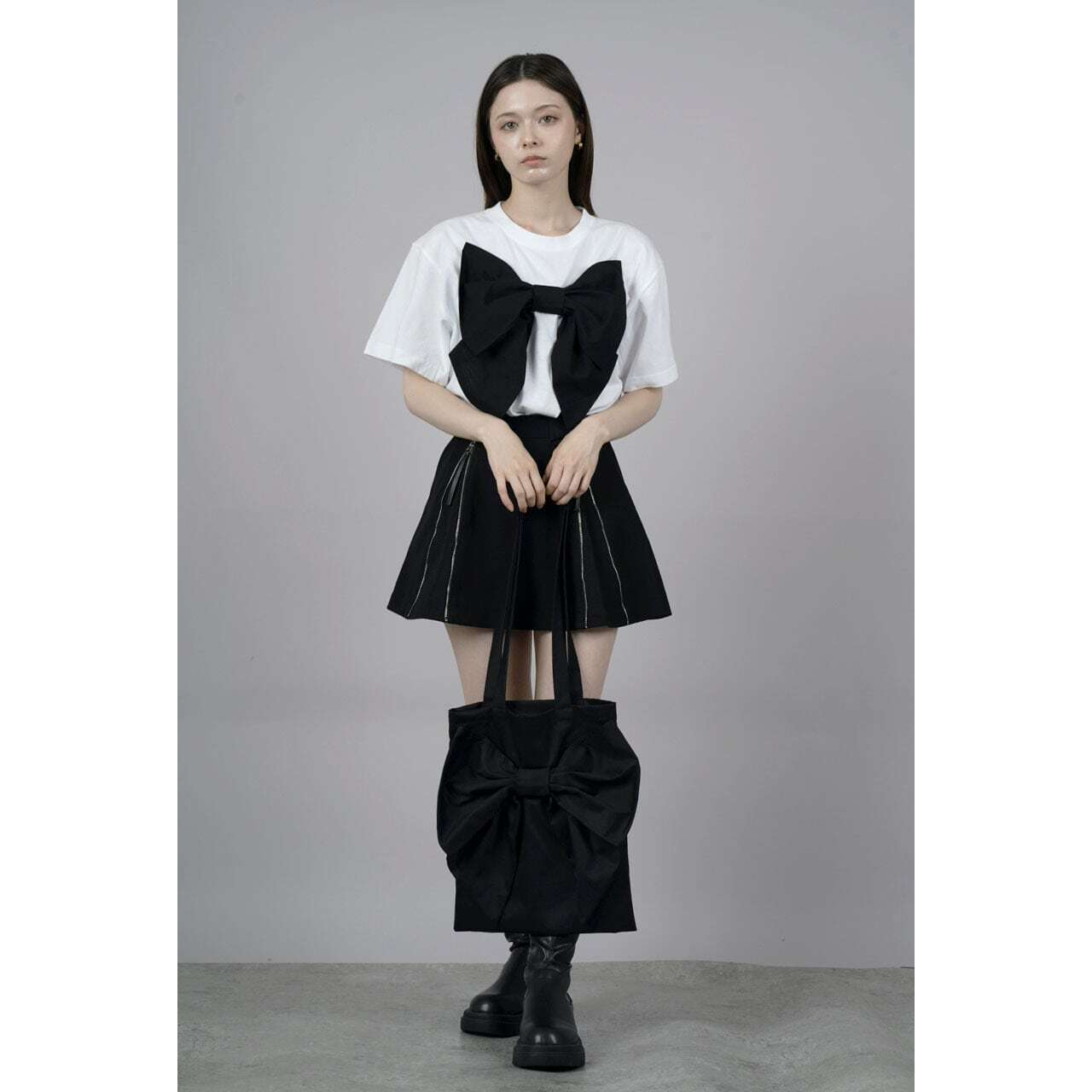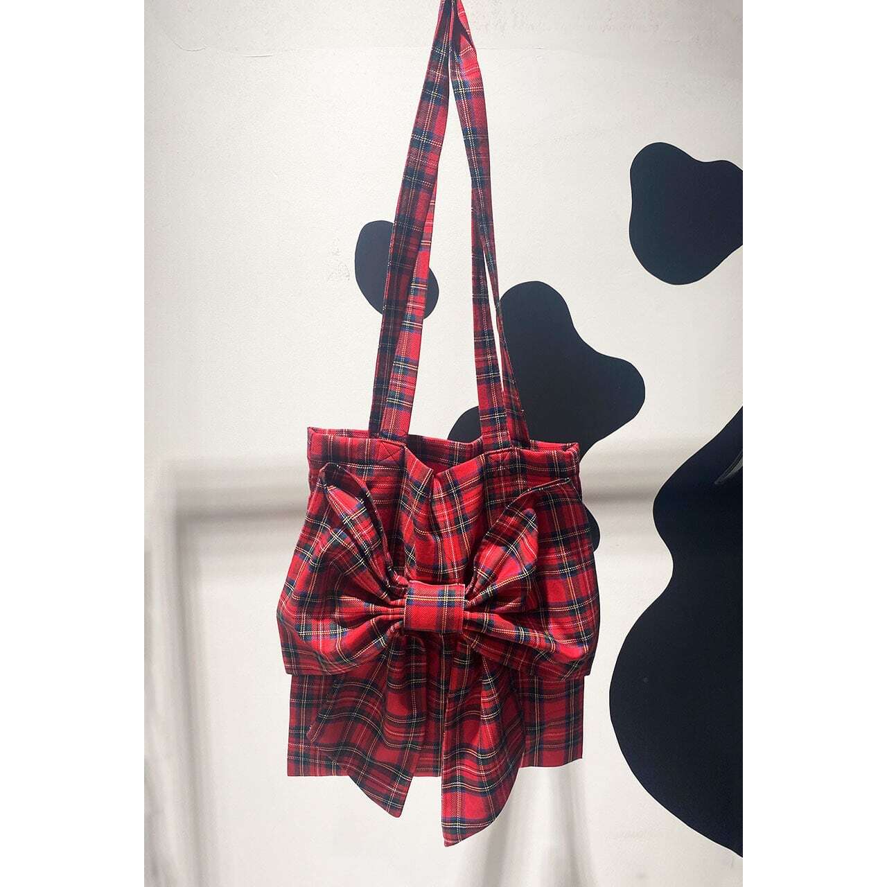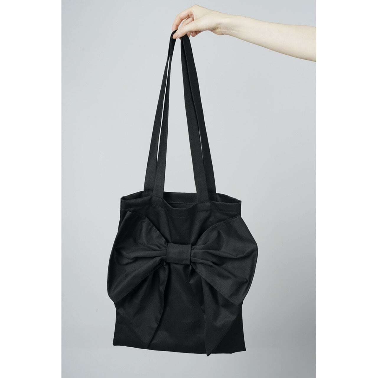 ブラックのトートバッグに自分の好きなリボンをつけることができます♪