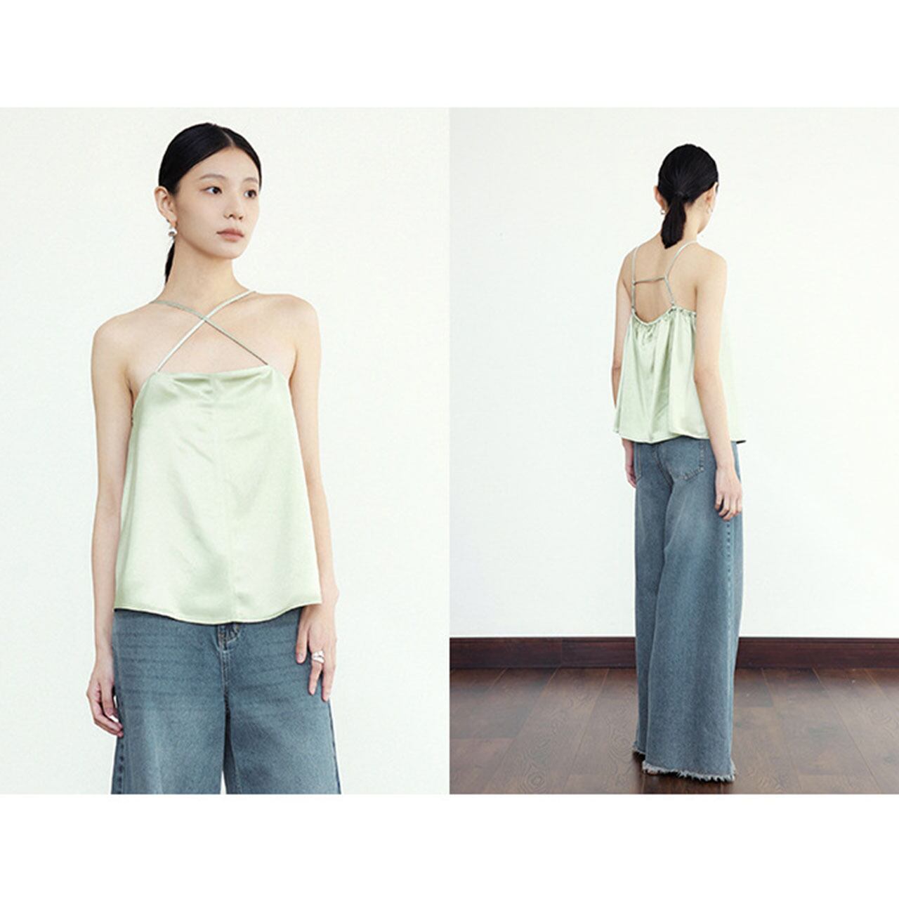 [Model / 171cm 着用サイズ / Mサイズ] ■ カラー Black Light Green ■ サイズ S バスト 81 着丈 34 M バスト 85 着丈 35 ■ 素材 アセテート 72% ポリエステル 28% ご購入前に下記リンクの注意事項を必ずお読みください。 www.ssisil.com/about
