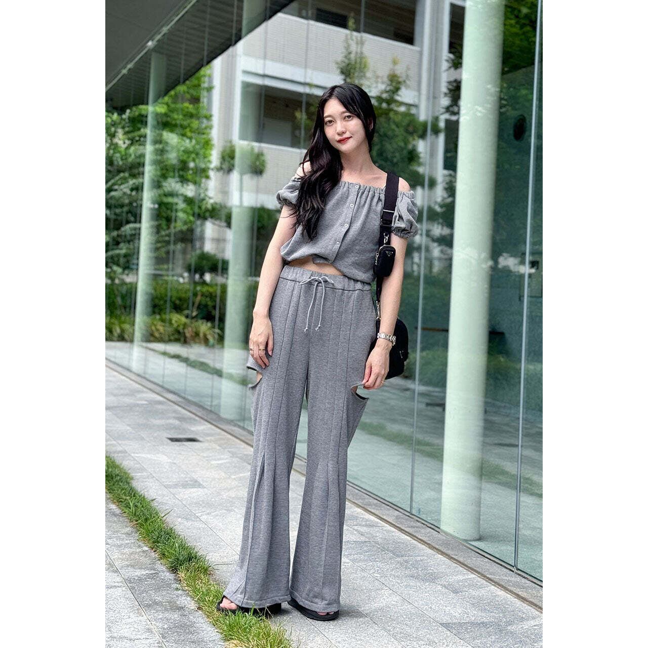 オフショルとして着たり、前を開けて羽織として着たり、ドローストリングで裾を絞って自分の好きな丈感に挑戦したり・・・1枚でいろいろな着こなしが楽しめるトップスを作りました!