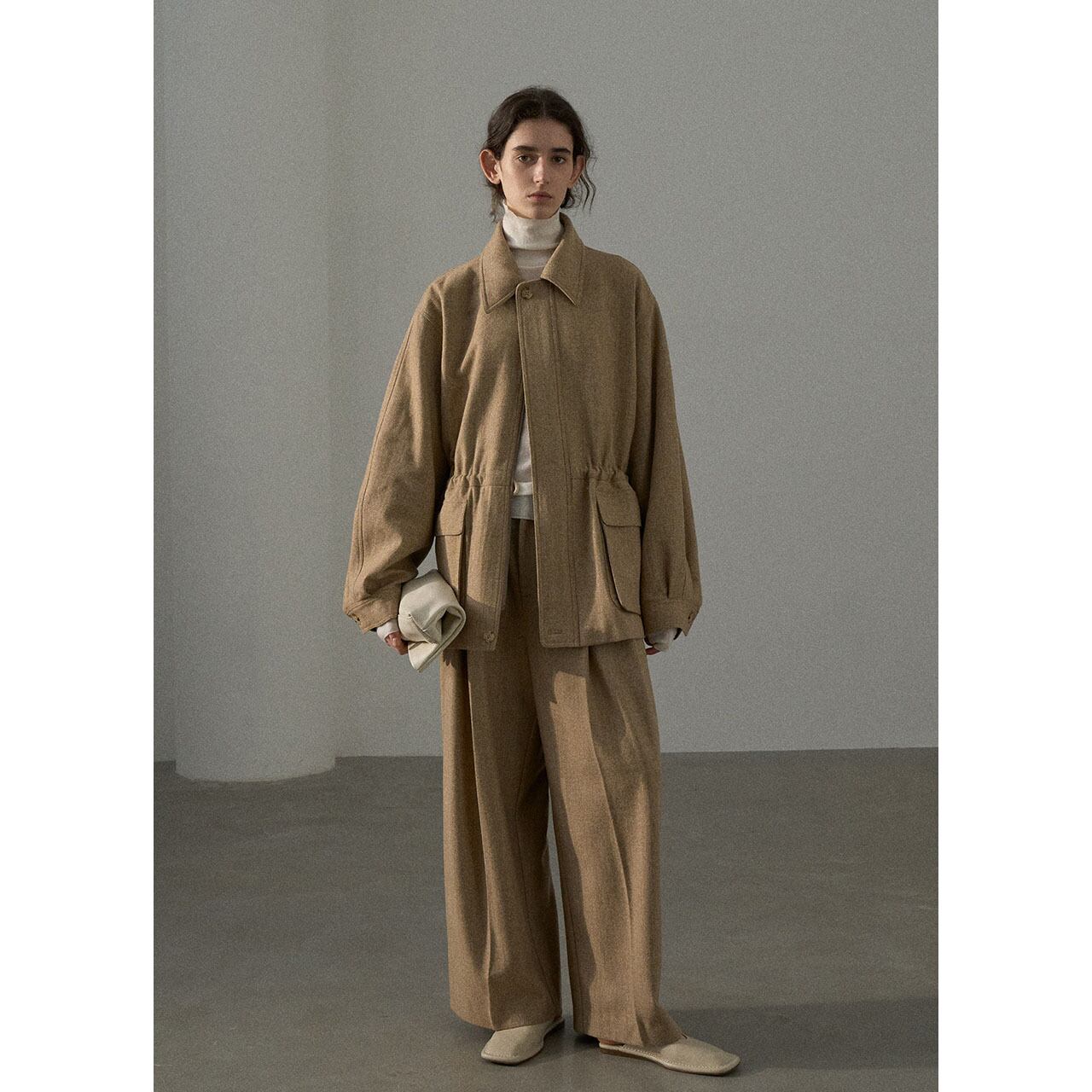 [Model / 171cm] ■ カラー Dark Brown Beige ■ サイズ F 肩幅 54 バスト 134 袖丈 62 着丈 78 ■ 素材 ウール 51.2% ポリエステル 48.8% 裏地:ポリエステル 100%